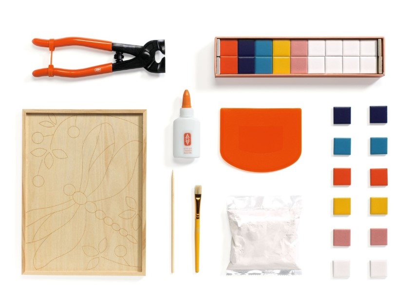 Ce face special Atelier creativ 72 Mozaic, Djeco este combinația dintre materialele profesionale și ghidarea foarte clară. În cutie găsești placa din lemn imprimată, 100 de plăcuțe ceramice, clește pentru tăierea mozaicului, tub de adeziv, ciment special, spatulă flexibilă și un șablon pentru montaj. Totul este însoțit de un pliant și de un card cu cod QR către un tutorial video complet. Copilul sau adolescentul nu este lăsat să „se descurce” singur, ci este ghidat în fiecare etapă, de la tăierea plăcuțelor până la aplicarea chitului.