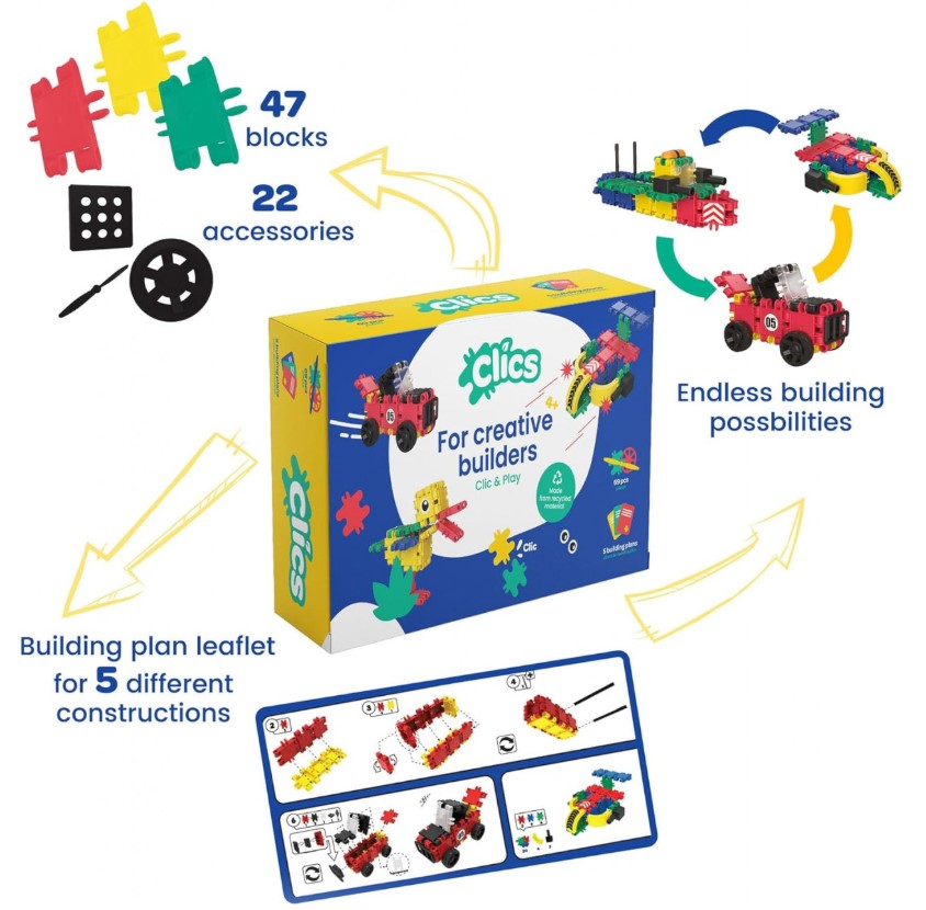 Setul Clicformers are și o latură educativă legată de responsabilitate și mediu. Piesele sunt făcute din plastic reciclat, iar asta poate fi un bun punct de pornire pentru discuții simple despre reciclare și grija pentru planetă, chiar și cu un copil de 4 ani: „Uite, jucăria asta e făcută din plastic refolosit. Asta înseamnă că facem mai puține gunoaie”. În același timp, faptul că seturile Clicformers se pot combina între ele înseamnă că joaca crește în timp – azi construiește mașina de curse, peste câteva luni poate să o combine cu alt set și să inventeze un vehicul total nou.