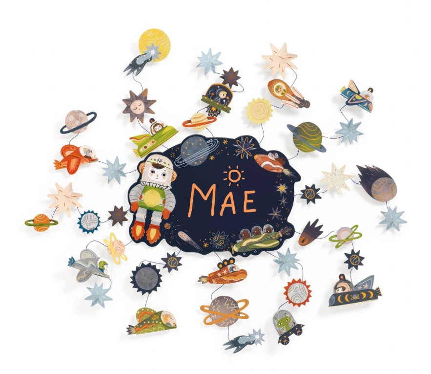 Jocul creativ DIY „Printre stele” este genul de activitate care îi prinde imediat pe copiii de 5 ani. Ai o tăbliță neagră de scris, ca un mic panou de mesaj, și o mulțime de ilustrații cu tematică spațială pe care copilul le lipește pe tije și apoi le prinde pe tablă. Practic, își construiește singur un decor cu planete, rachete și stele, iar apoi poate scrie mesaje cu markerul cu cretă lichidă și să le șteargă ori de câte ori vrea. E un obiect decorativ pentru cameră, dar și un spațiu de joacă și desen care se folosește iar și iar.