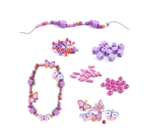 Mărgele de înșirat din lemn Fluturi, Djeco