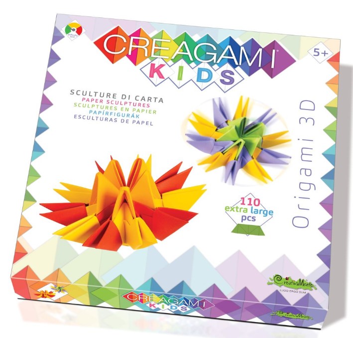 Setul Creagami cu titirezi pornește de la bucăți mici de hârtie, deja decupate, pe care copilul le îndoaie pe rând, asemenea origami-ului clasic. Fiecare modul este simplu, dar când sunt puse cap la cap, aceste module formează un titirez 3D spectaculos. Copilul repetă același gest de multe ori, ceea ce îi dă un ritm plăcut și îl ajută să intre într-o stare de concentrare calmă. La final, are în față o mică “sculptură” colorată, făcută doar din hârtie.