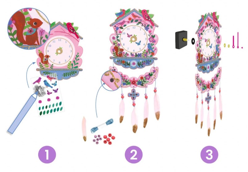 Set DIY Ceas de Perete, Roz cu Glitter si Pasarele, Djeco