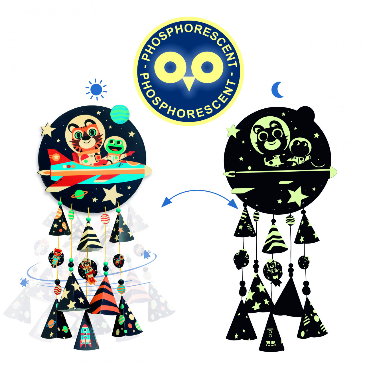 Transformă o activitate creativă într-un obiect decorativ spectaculos cu Setul DIY Mobil Fluorescent cu Clopoței – Stele! Ziua, decorațiunea este veselă și colorată, iar noaptea, stelele strălucesc delicat în întuneric. Sunetul plăcut al clopoțeilor și designul inspirat din spațiu oferă o experiență senzorială completă. Cu ajutorul instrucțiunilor detaliate pas cu pas, copilul poate asambla ușor mobilul folosind mărgele, conuri ilustrate, autocolante și clopoței – totul pe fire de bumbac cerat.