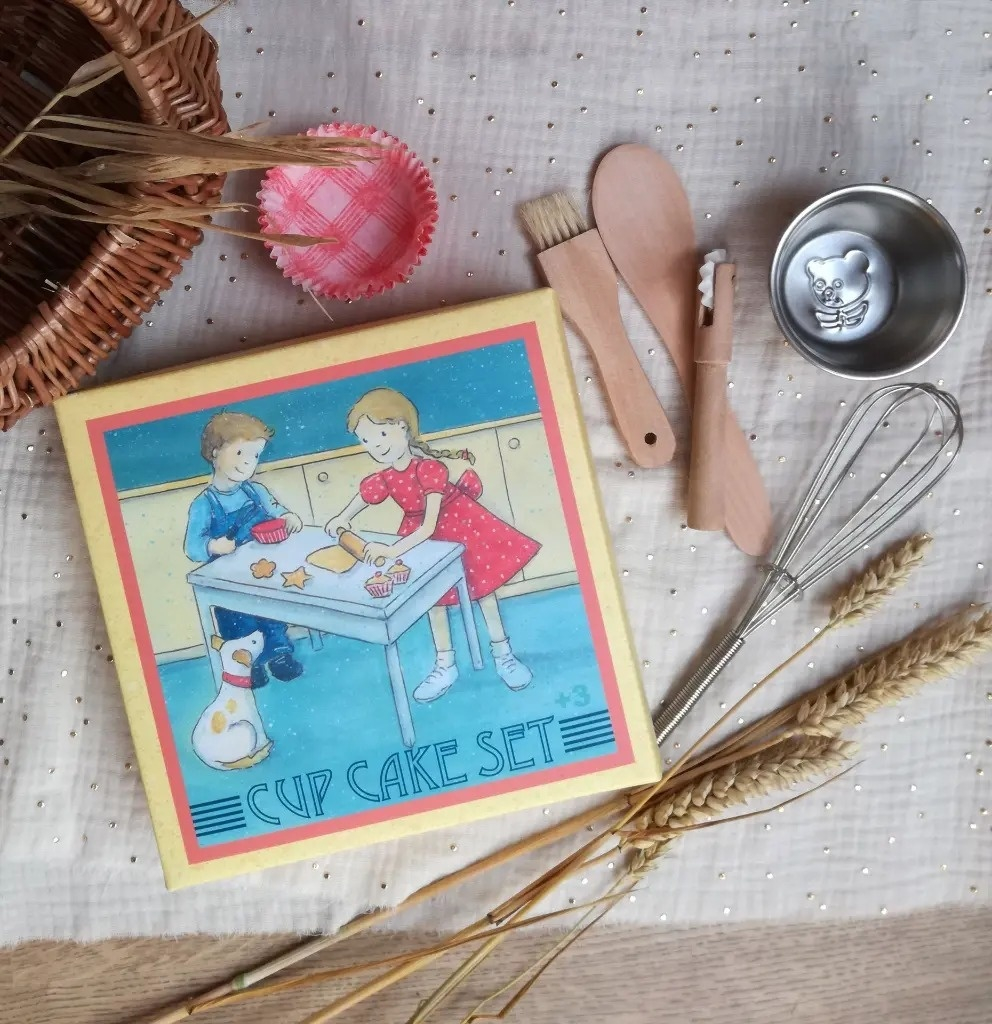 Un set adorabil din lemn, perfect pentru micii pasionați de deserturi și jocuri de rol! Setul de gătit prăjituri le oferă copiilor ocazia să creeze propriile scenarii de joacă în bucătărie sau într-un magazin improvizat, folosindu-și imaginația și creativitatea în fiecare moment. Prăjiturile colorate, decorate cu detalii vesele și texturi plăcute, transformă joaca într-o experiență dulce, distractivă și plină de farmec.