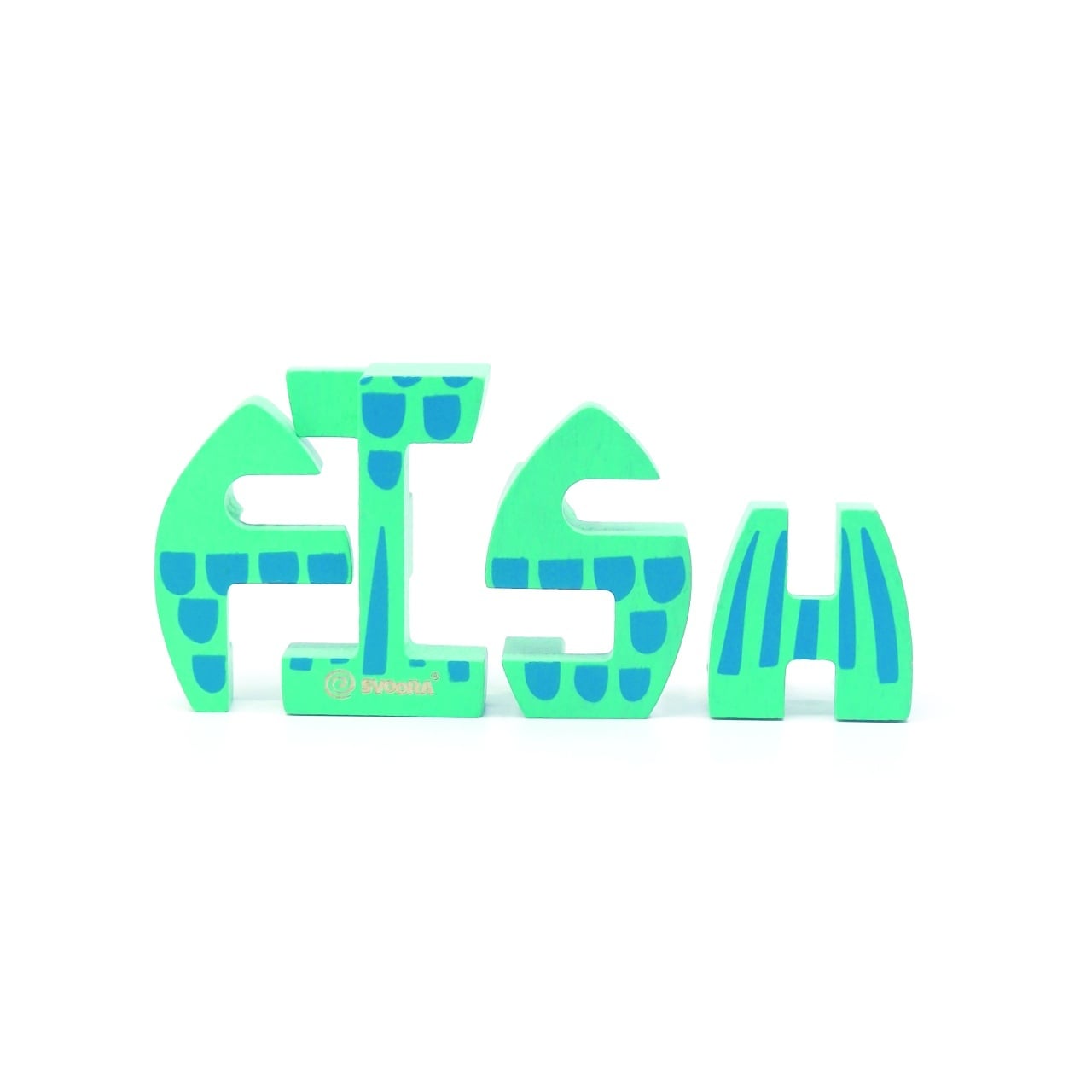 1 x puzzle 3D din lemn – literele F-I-S-H care formează un pește