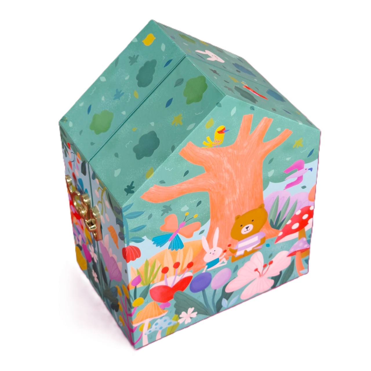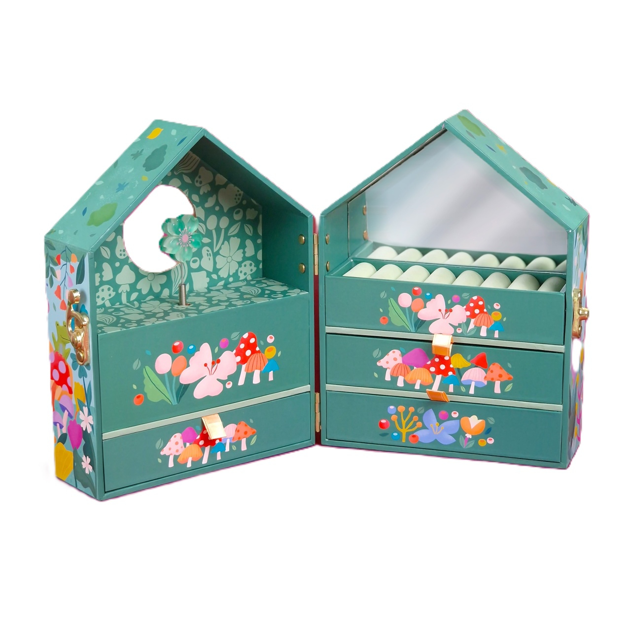 Adaugă un strop de magie și nostalgie în camera copilului cu Cutia de Bijuterii Muzicală – Căsuța din Copac. Cu un design inspirat din povești și detalii pastelate pline de farmec, această cutie este mai mult decât un simplu organizator – este o experiență. La deschidere, dezvăluie o oglindă delicată, rafturi și un suport pentru inele, în timp ce mecanismul muzical redă blânda melodie Beautiful Dreamer, transformând fiecare moment într-un ritual liniștitor.
