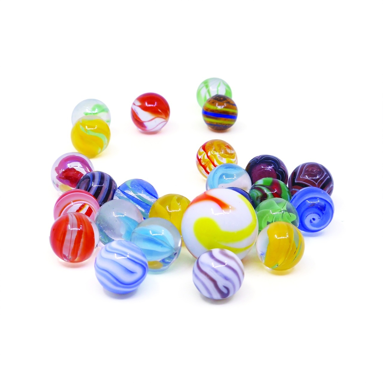 Cu 24 de bile din sticlă colorată și o bilă shooter mai mare, acest joc cu bile pentru copii încurajează precizia, concentrarea și competiția prietenoasă. Designul variat al bilelor, cu spirale, culori intense și efecte sclipitoare, transformă fiecare rundă într-o experiență vizuală atractivă.