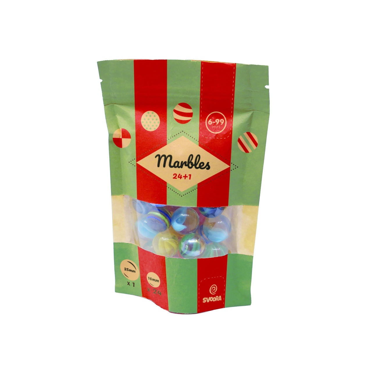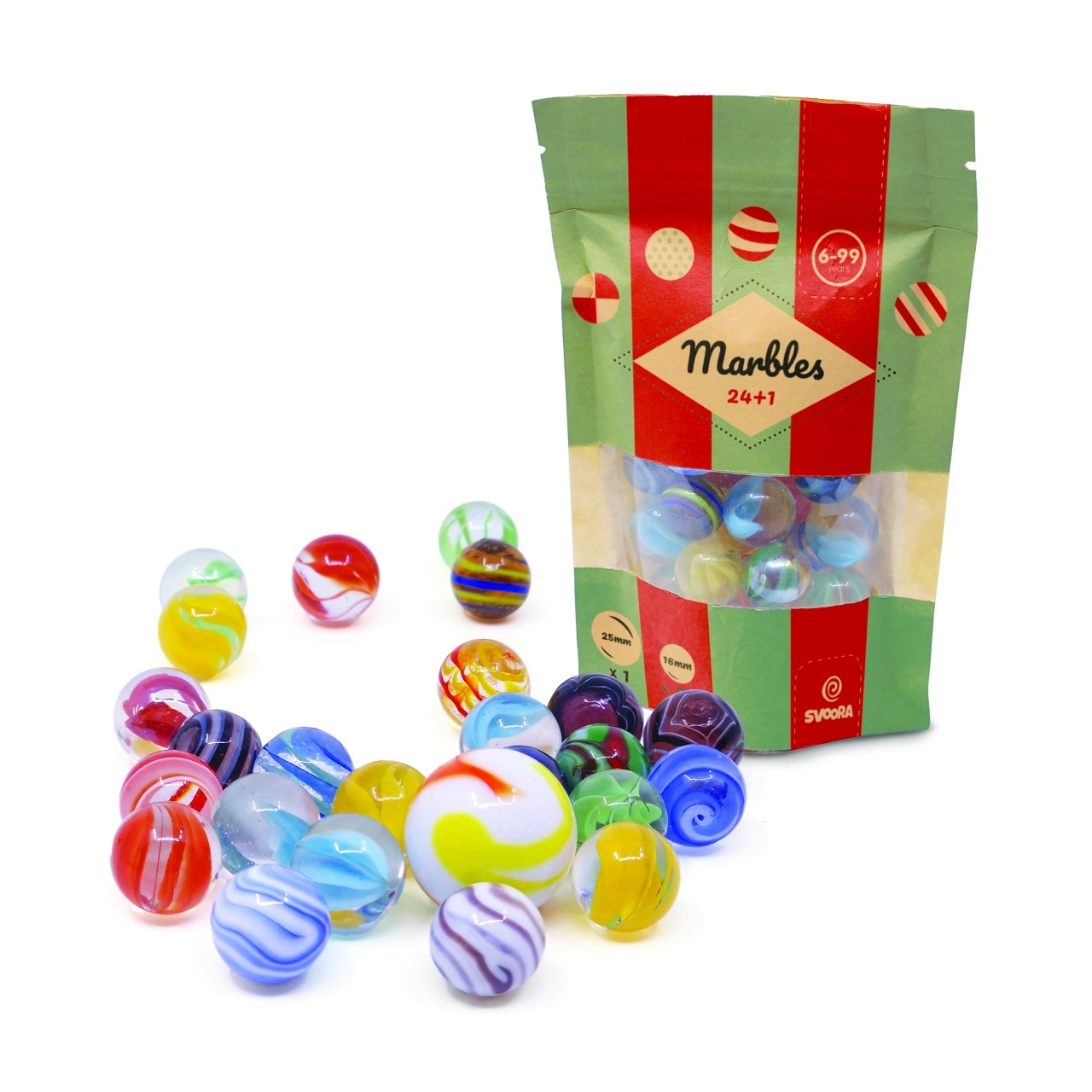 Jocul cu bile de sticlă Svoora readuce în prim-plan bucuria unui joc clasic, simplu și captivant, îndrăgit de generații întregi. Setul este potrivit pentru copii de peste 6 ani și oferă o activitate distractivă, ideală pentru joacă în familie, cu prietenii sau în cadrul activităților educative.