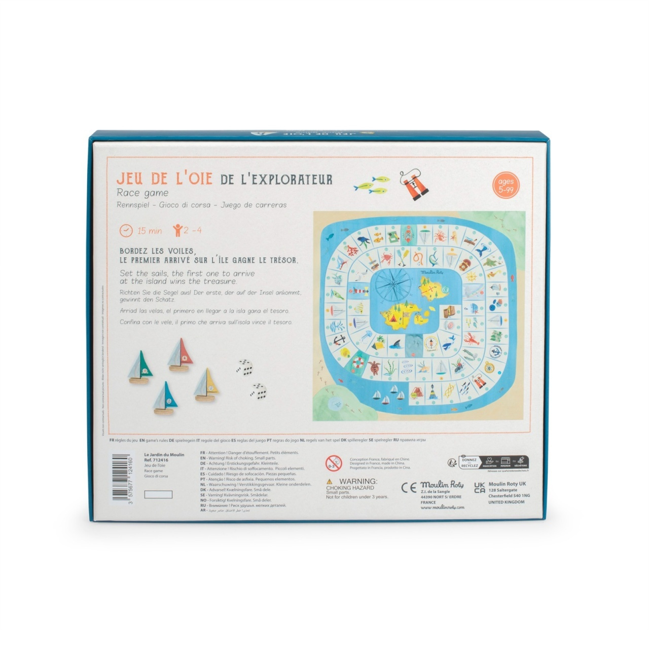 Ridicați pânzele și porniți în cursă! „Excursie pe insula comorilor” este o versiune specială a clasicului joc de tip „șerpi și scări”, cu o tematică de exploratori pe mare. Aventura se desfășoară printre vietăți marine și vârtejuri periculoase, iar obiectivul este clar: primul jucător care ajunge pe insulă câștigă comoara. Un joc perfect pentru seri în familie, cu reguli ușor de înțeles și multă distracție.