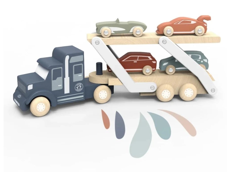 Pregătește-te de drum cu Camionul transportor de mașinuțe de la Speedy Monkey – o jucărie din lemn solidă, colorată și plină de posibilități de joacă! Cu un design robust, rampă mobilă și patru mașinuțe incluse, acest set stimulează imaginația și dezvoltarea celor mici prin jocuri de sortare, transport și curse palpitante.